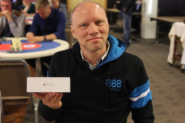 После завтрака куда то шляться лень, вернулся в номер и решил покачать скилл в онлайне. Обычная людомания — сперва отымели, потом отбился и вышел в плюс. День начался отлично. Время улетело незаметно, и пора уже податься на главный турнир, ради чего я собственно тут оказался. Первый день мы не играли в казино, но рядом в соседнюю дверь, в конференц зале гостинице Radisson Blu Olümpia. Забегая вперёд скажу что всего в турнире играли где то примерно 130 человек, но так как турнир был с ре-энтрии получилось 150 входов, для такого количество игроков в казино мест для всех не нашлось,хотя этот самий большой Оlympic казино в Таллине. Краткая речь организаторов и магические слова — let`s shuffle up and deal. Поехали. Да, кроме призового фонда были еше и три спец приза — за собраний рояль флеш — iPhone6, за фулл хаусс с тремя восьмерками Go PRO камера, бабл бою хорошие наушники. ГСЧ подкручен — за соседним столом рояль собрали за пять минут, не то что собрали, но еше и положили с флопа, и чтобы поиздеваться и добрать противнику положили фулл хаусс ривером. Iphone 6 попал в руки приятного мужичка из Швеции.